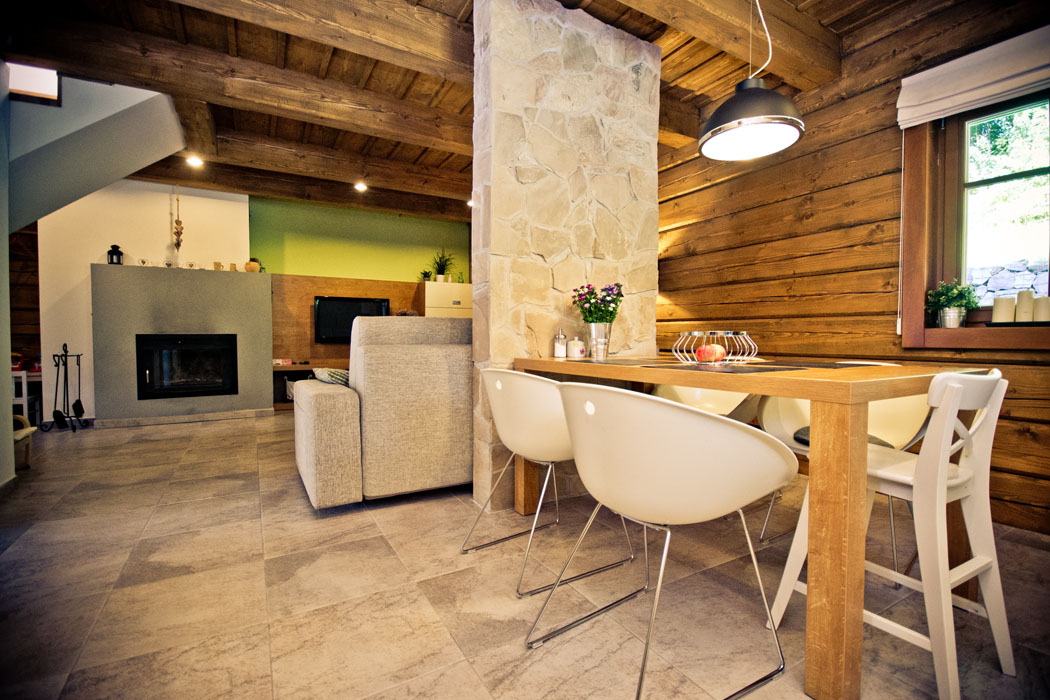 Vila se nachází na velmi atraktivním místě Beskyd, na samotě u lesa. Celý interiér domu je laděn do stylu masivního dřeva, odkrytých trámů v podkroví, kamene na zdech a kožených sedaček. Přijeďte, ať už sem vezmete partu přátel na víkend nebo se zde rozhodnete uspořádat svatbu. Nic zde není nemožné.
