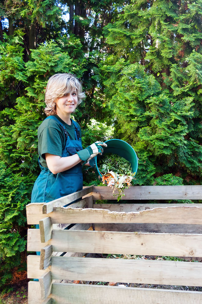 Máte-li zahradu, nebojte se obnovit éru zahradních kompostů. Kromě přehrabání jednou až dvakrát do roka a následného prosetí hotového kompostu nevyžaduje žádnou údržbu. Jen je třeba si rozmyslet, co a v jakém množství do něj vyhodit. Kompost by měl mít plochu alespoň 1 m2, ideální jsou dvě komory. Může být zděný, dřevený nebo dokonce z proutí – fantazii se meze nekladou. Na dno vložte větší větve, teprve na ně házejte biologický odpad. Díky tomu může spodem odtékat tekutina ze zbytků.