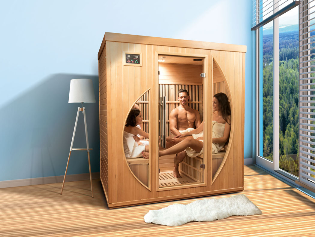 Infrasauny a finské sauny jsou sice někdy prezentovány jako podzimní sortiment, ale to nevadí. Pro naše zákazníky je teď máme s 45 až 55 % slevami, takže se dají pořídit už od 14 995 korun. Na snímku elegantní rodinná infrasauna ROWEN.