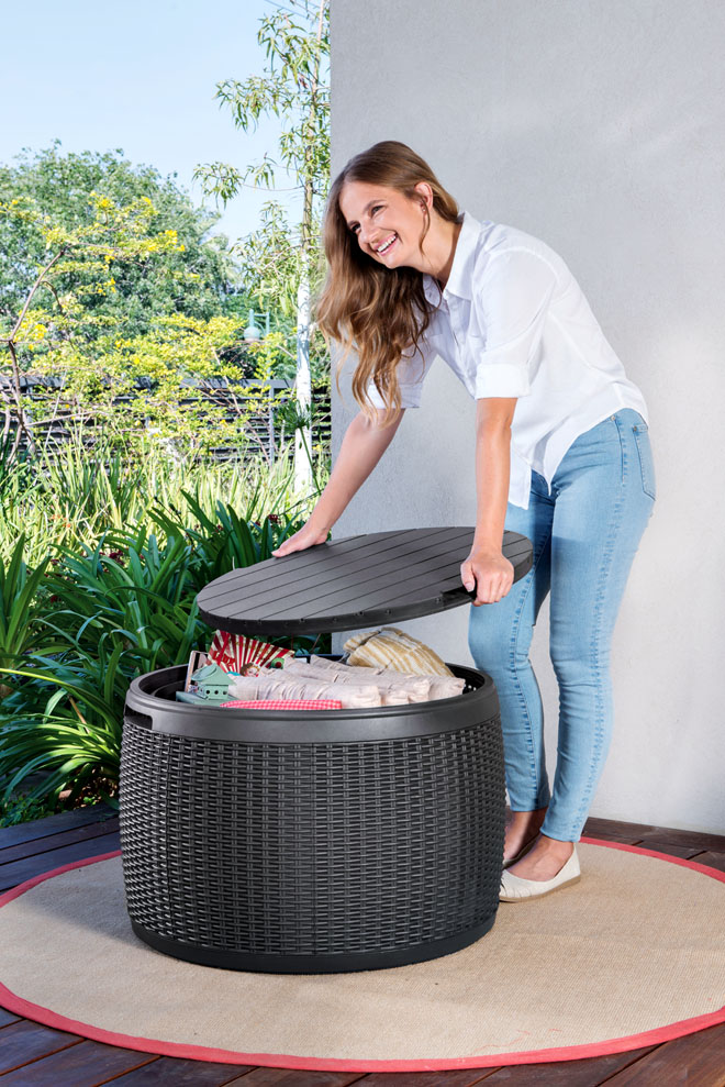 Zahradní vybavení vhodně doplňují skříňky a boxy, které slouží k úschově polstrování, hraček, zahradních pomůcek a dalších věcí, a tím se udržuje na zahradě pořádek. K ochraně nábytku jsou důležité obaly a správná péče.