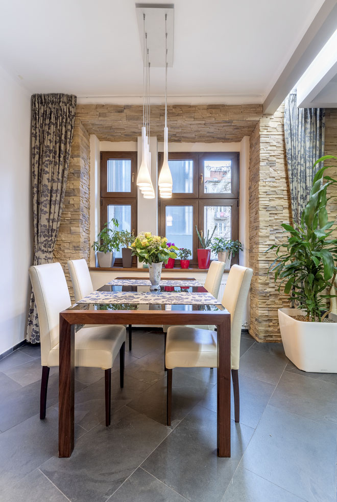 Dobré je také sokl vzhledem k rovině fasády mírně zapustit – kromě snížení rizika promáčení se také omezí mechanické namáhání. Odstřikující vodě také dobře odolává okapový pruh z hladkých valounků, jehož šířka by měla být nejméně 30 cm.