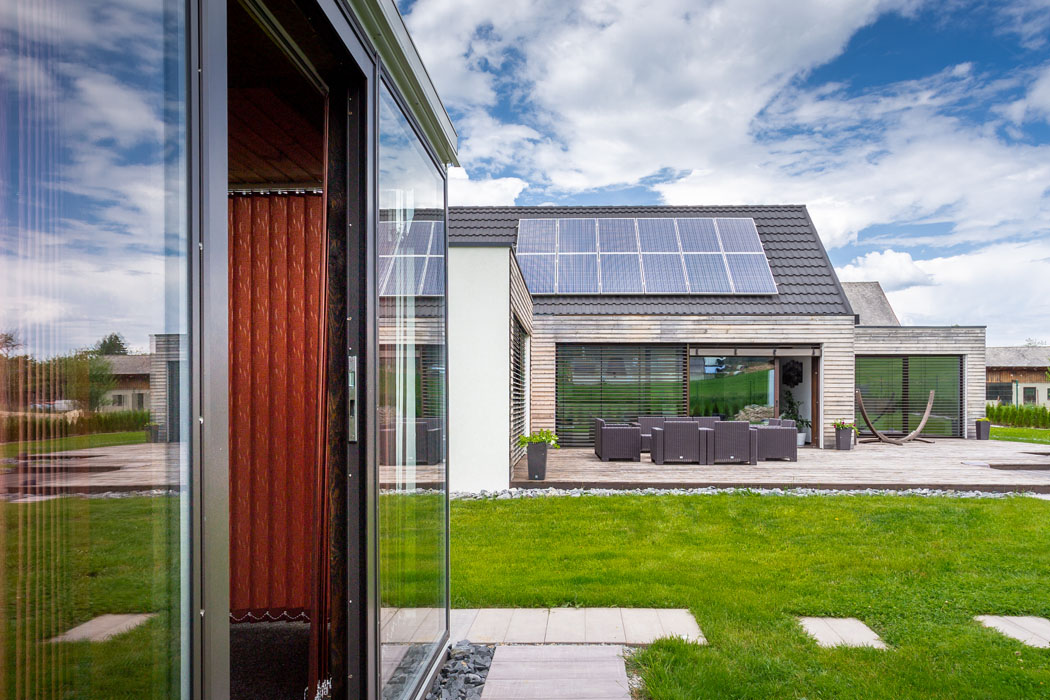 Ostrovní elektrárna: V systému je použita a pracuje ostrovní elektrárna, která není spojena s rozvodnou sítí a používá se pouze k ohřevu vody. Nebylo k ní potřeba žádné povolení od ČEZu. Pro čtyřčlennou rodinu obvykle postačí výkon do 2 kW, což v daném případě představuje 7 ks fotovoltaických panelů a patentovaný invertor Biosuntec, který se v tomto typu elektrárny používá místo klasického střídače, pro přeměnu jednosměrného proudu z fotovoltaických panelů na proud střídavý.