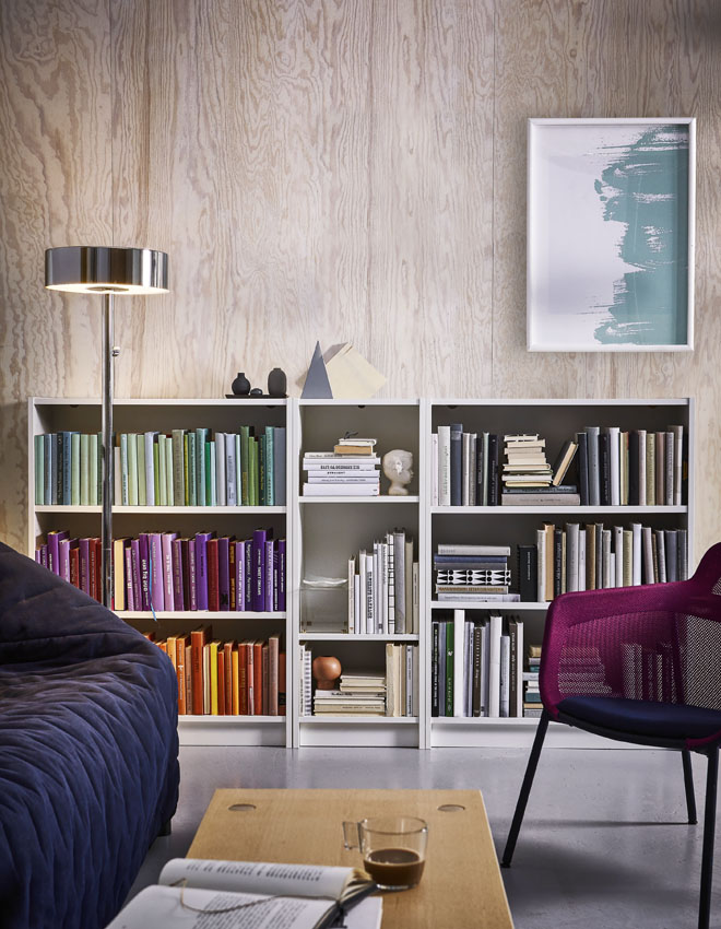 Knihy v rozsáhlé knihovně lze třídit jako v knihkupectví podle žánrů, abecedně podle autora jako ve veřejné knihovně, případně si pohrát s řazením podle tématu, kterým může být třeba příroda. Kreativci se mohou vrhnout do třídění podle barevnosti, formátu nebo vzhledu obálky knihy. Jde o to, aby knihovna byla tematicky i vizuálně přehledná.