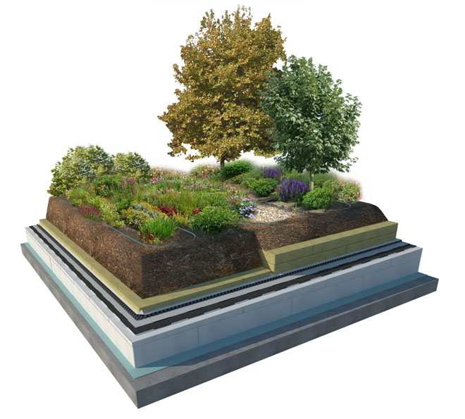 Realizace vegetační střechy není náročná, Isover navíc nabízí moderní desky z hydrofilní minerální vlny, které dokážou ozelenit téměř každou plochou i šikmou střechu, nebo dokonce i zcela svislou stěnu. Desky ISOVER FLORA nebo ISOVER INTENSE se používají v kombinaci se střešními substráty a pro svoji nízkou hmotnost je možné tyto systémy použít i pro rekonstrukce. Mezi oblíbené varianty zelených střech patří v poslední době střešní zahrada, jezírko a grill střecha Isover.