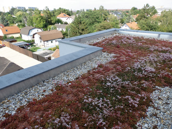 - Prodloužení životnosti střechy – vegetace chrání izolaci střechy před klimatickými vlivy.
