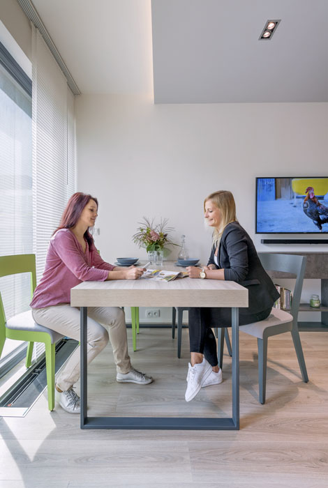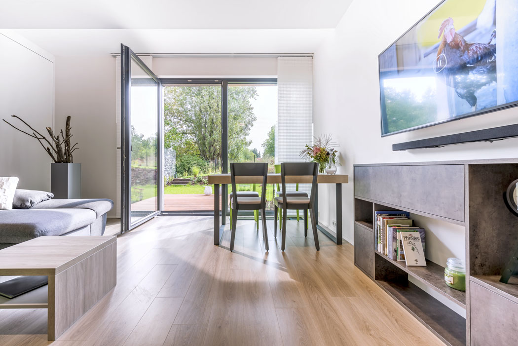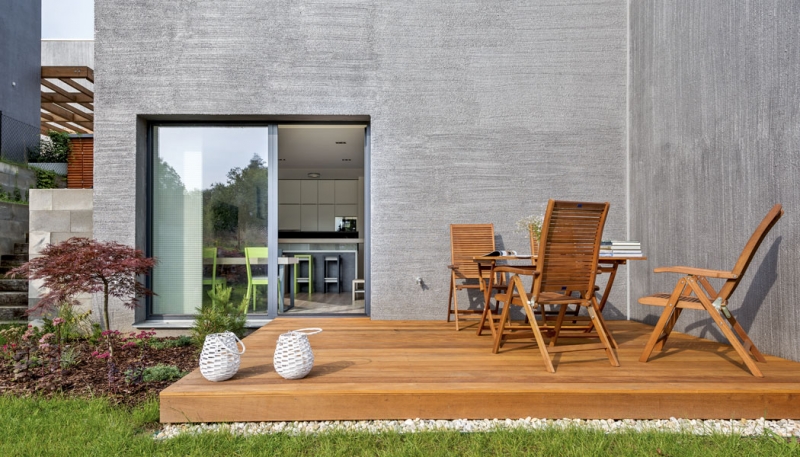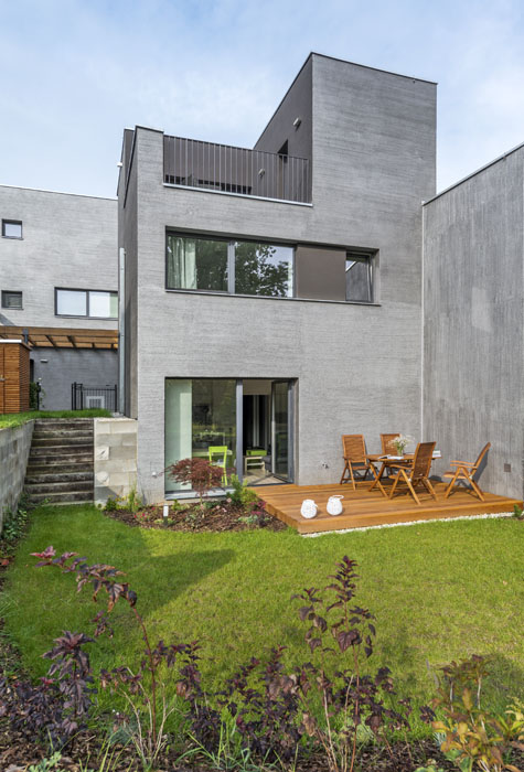 Realizace kompletního interiéru a zahrady včetně terasy, zahradního domku, dřevníků a dalších venkovních úprav se ujalo studio ZAKI Design. Do domu nastoupili designéři ve fázi, kdy už byla od developera stavba dokončená, položené podlahy, sestavená základní kuchyňská linka a částečně hotové koupelny. Interiér a zahrada byly jinak netknuty.