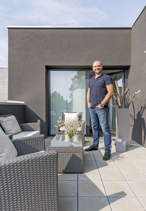 Rozsáhlou modelací terénu prošel pozemek v údolí řeky Litavy v blízkosti chřibských lesů po dokončení hrubé stavby rodinného domu. „Šlo nám především o to, abychom měli možnost vyjít z obývacího pokoje přímo na rovinatou terasu, na niž bude zahrada plynule navazovat,“ vysvětluje Radek.