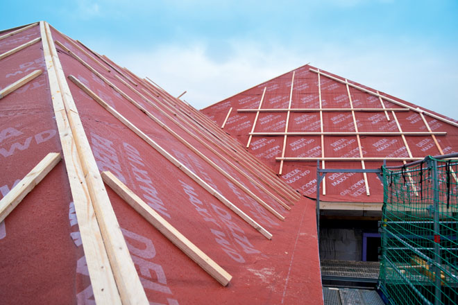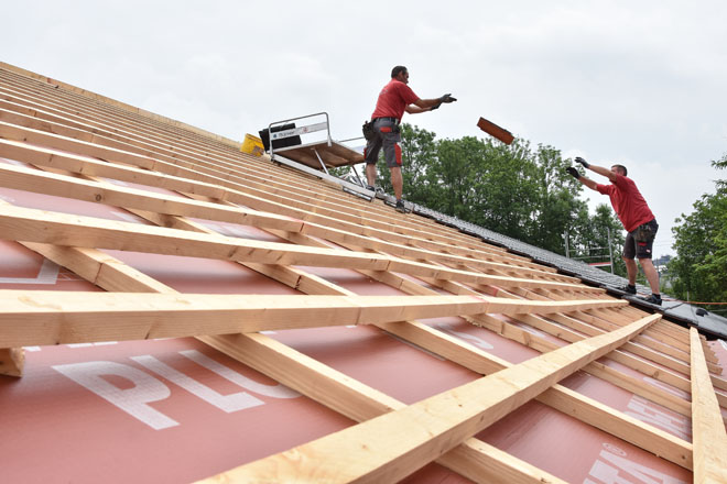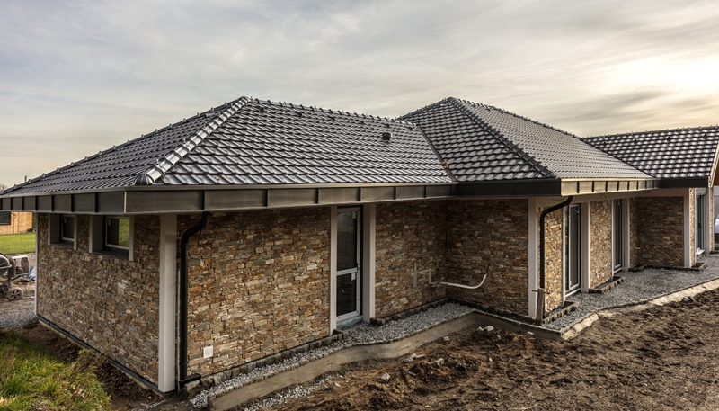 Střechu realizovanou jako provětrávanou stavěla pokrývačská firma pana Prchala, která vyráběla i skryté okapové žlaby do tvaru U, skryté netradičně působícím oplechováním. Vše dělané na míru a s řádným fortelem.