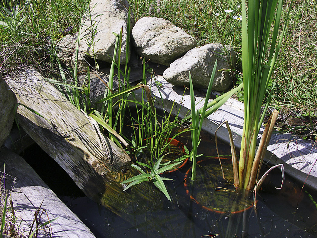 Málokterou vanu však napadne, jaké úmysly by s ní mohl mít šílený ekozahradník nenápadně se plížící kolem. Já si myslím, že žáby, čolci, vodní rostliny a žíznivá zvířátka jsou pro každou vyřazenou vanu jednoznačně nebem, nebo alespoň důstojným dožitím. Stačí ji zakopat, naplnit vodou, vysadit vodní rostlinky a instalovat výlez pro spadlé živočichy (třeba prkno, jednou stranou na dně, zatížené cihlou, druhou ven přes okraj).