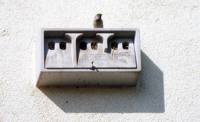 2. Kočka ani kuna nedokáže lézt po hladké svislé ploše. Pro ptáky budou tedy bezpečné ty budky, které lze instalovat na zeď nebo přímo vestavět do fasády domu. Právě již zmiňovaní vrabci takové budky s oblibou využívají. Existují i budky pro rorýse, který byl zvyklý na hnízdění ve škvírách panelů a nyní při zateplování panelových domů je ve velké nouzi.