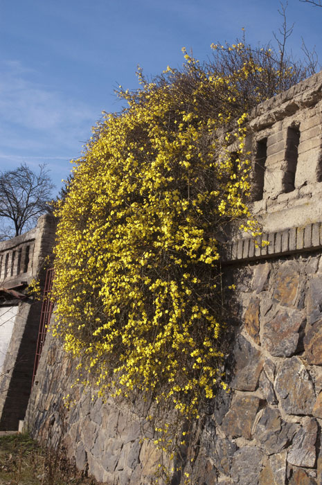 Ve stejné oblasti Dálného východu roste další velmi hezká dřevina: jasmín nahokvětý (Jasminum nudiflorum). Tento metlovitě rozložitý keř s dlouhými chabými, obloukovitě rostoucími větvemi se hodí na místa, kde se může plazit nebo převisat dolů, je možné ho i vyvázat na mříž do výšky.