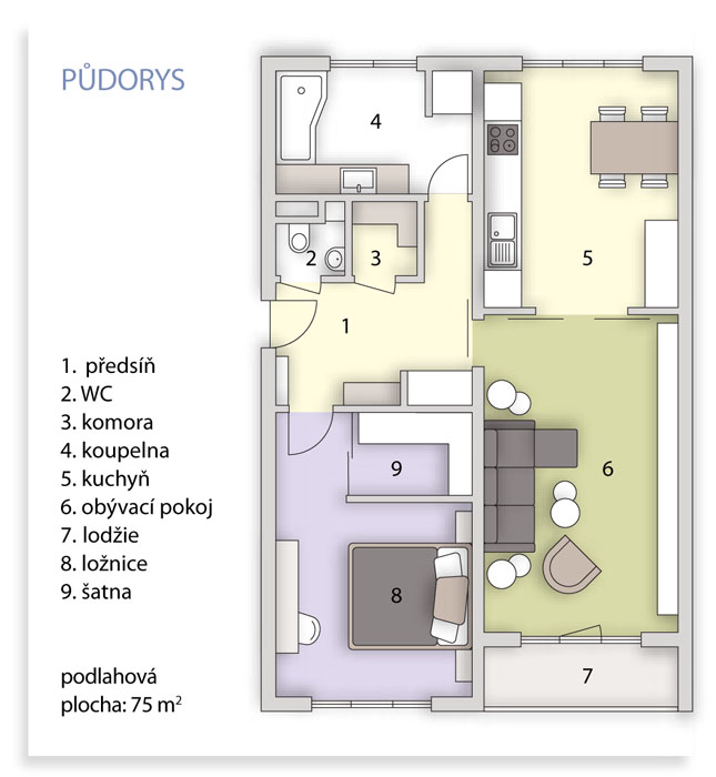 Majitelka se na designérku obrátila s požadavkem na rekonstrukci třípokojového bytu, který je v paneláku postaveném na konci padesátých let. Odstěhovaly se jí z domova dvě dospělé dcery a tak se naskytla možnost přizpůsobit byt novým podmínkám.