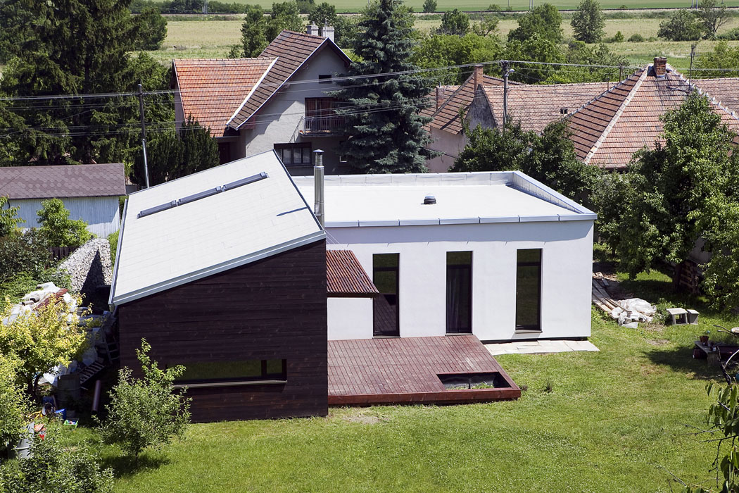 Ve skladbě následuje difúzně otevřená větrotěsná fólie Homeseal LDS 0,04, přes kterou se kotvily ocelové profily Z. Ty plní funkci ztužení pásnice příhradové soustavy a zároveň vymezují prostor vzduchové mezery. Venkovní opláštění bylo realizováno pomocí cementové desky Knauf Aquapanel Outdoor, na kterou byla dále aplikována finální pohledová vrstva omítky.