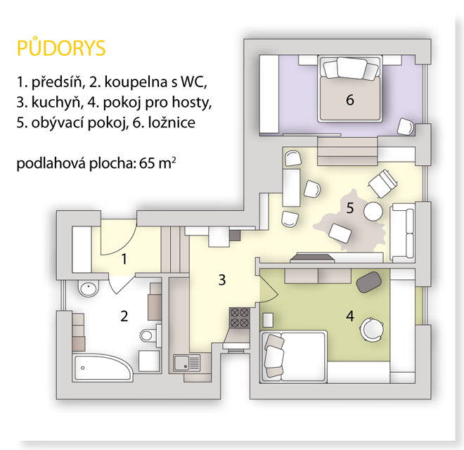 Byt byl původně správcovský o rozloze 35 metrů čtverečních, které byly „rozparcelované“ na dvě místnosti a malou koupelnu s toaletou. Teď má slušných 65 metrů, což už nabízí pěkné a velmi komfortní bydlení.