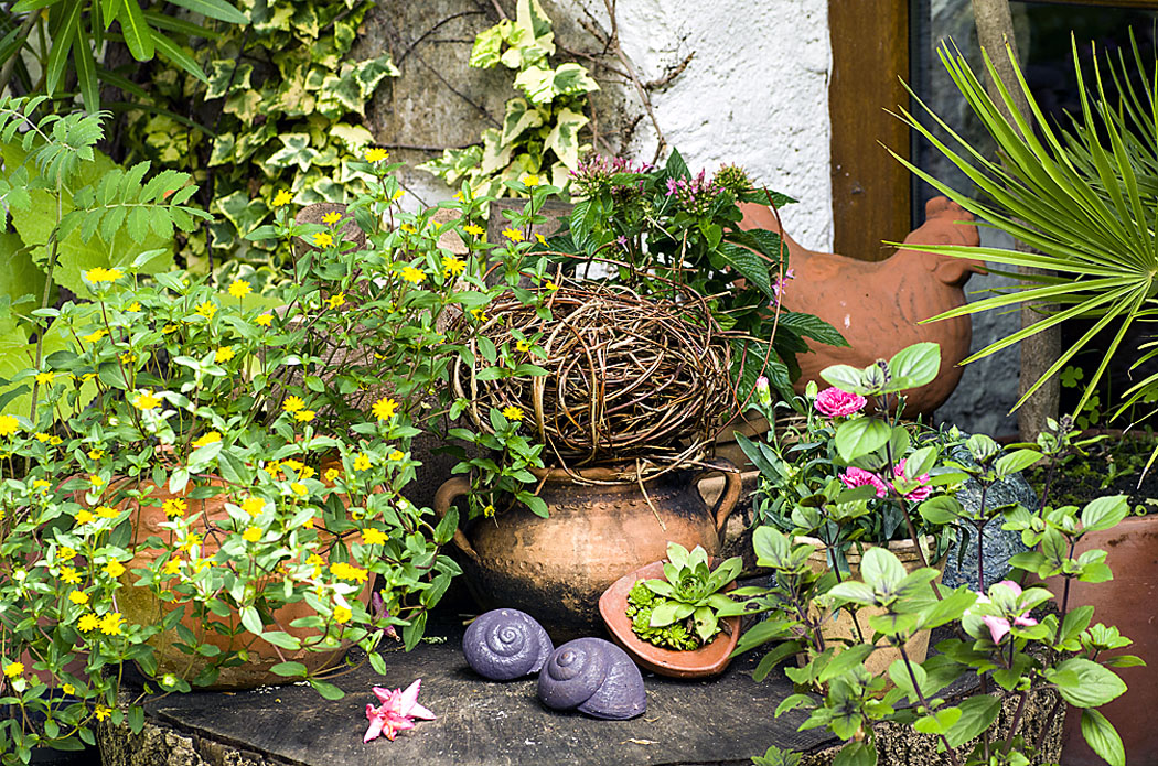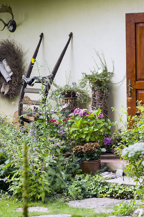 Zdena je výtvarnice a floristka, což poznáte z každého zátiší, kterého se její šikovné ruce dotkly. Vyšperkovat zahradu tak, aby vypadala stejně dobře jako tahle, vyžaduje velký cit pro detail, a hlavně hodně fantazie. Dejte jí pár suchých stonků s pichlavými plodenstvími lopuchu, která se tak snadno zacuchávají do psích kožichů, a ona vám z nich vykouzlí skvostné srdíčko.