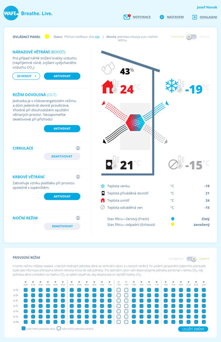 WAFE v roce 2017 přichází na trh s rekuperační jednotkou, která umožňuje snadnou vzdálenou správu v prostředí zvaném moje.wafe.cz (viz obr.).