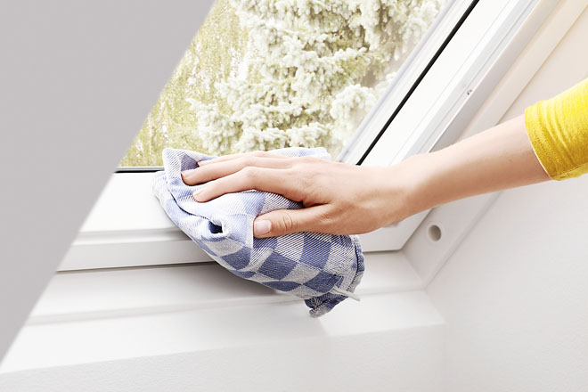 „Okna samozřejmě vyžadují péči, běžná údržba je však jednoduchá a obvykle ji stačí provést jednou za rok. K čištění nepoužívejte prostředky obsahující abrazivní částice a dejte pozor, abyste nepoškrábali sklo. Většina venkovních skel je totiž opatřena ochrannou vrstvou, která by ztratila svoji funkčnost. Existují i skla se samočisticí vrstvou, která snižuje ulpívání organických nečistot, ty jsou během deště odplaveny bez viditelných šmouh a oka není nutné tak často umývat. Okno je na povrchu opatřeno vrstvou bílého laku s UV filtrem, takže i při působení slunečního záření zůstává stále bílý a nemění svoji barvu. Ochranný nátěr dřevěných oken se doporučuje obnovit jednou za tři až čtyři roky, u oken vystavených prudkému slunci, velkému horku či nadměrné vlhkosti častěji. Alespoň jednou do roka okno zkontrolujte i z venkovní strany a očistěte odtokové žlábky v lemování. Srážení vlhkosti na vnitřní straně skel lze kromě jiného bránit také sušením prádla mimo interiér a udržováním stálé pokojové teploty kolem 20 °C.“