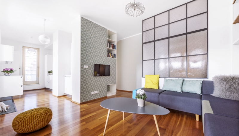 Interiér zcela postrádal zádveří. Z chodby se vstupovalo přímo do obývacího pokoje, proto bylo nutné ukrojit menší část celku a proměnit ji v praktické zádveří s věšákem, policí a menším úložným prostorem. Díky nově zbudované prosklené příčce vstupní chodba nijak nepotemněla. První zájemce o tento byt nechal šikovně zvětšit prostor obývacího pokoje na úkor lodžie. Toho architekti využili ke vzniku příjemné jídelny, kam navrhli lavici s úložným prostorem a skrýší pro kočky.