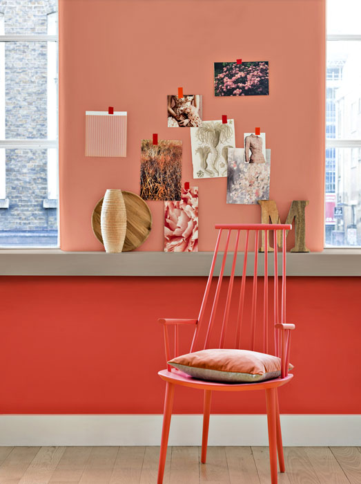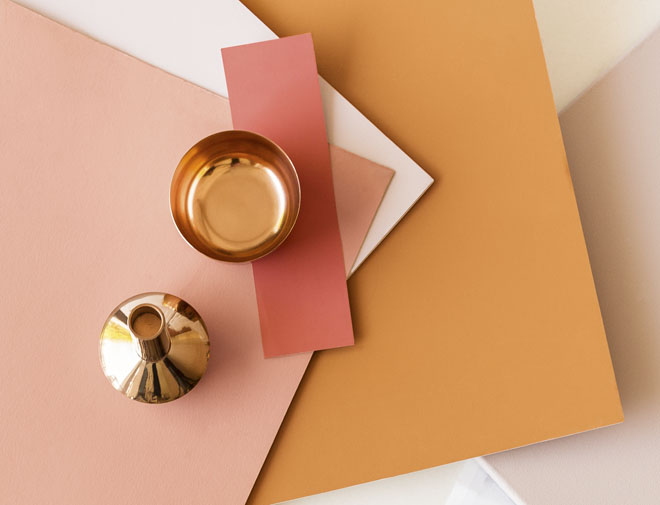 Nebojte se kovových odstínů zlata, bronzu a mědi. Od chladných zelených a modrých barev dominujících v minulých letech se paleta posunula k teplejšímu spektru růžových, červených a oranžových odstínů. Barva měděná oranžová ožívá v kombinaci s tělovou růžovou, s hliněnými odstíny neutrálních barev, bílými a oranžovými odstíny a také se dřevem a kovovým leskem zlata a mědi. Takto laděné interiéry se vyznačují sytostí, vřelostí a hřejivým dotekem země.