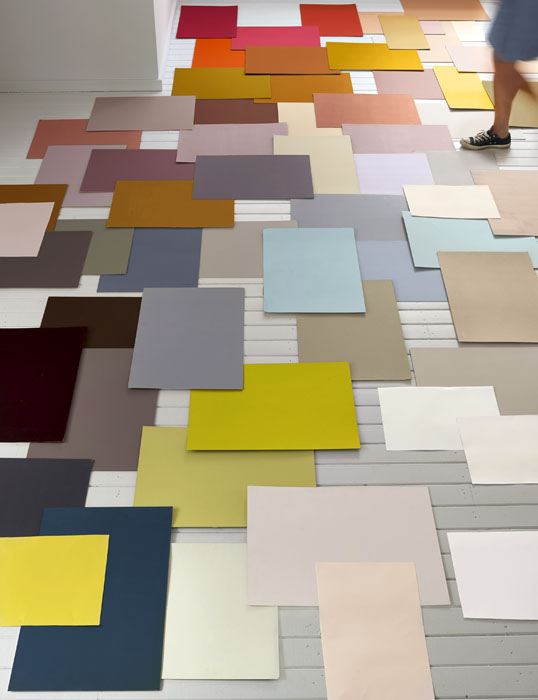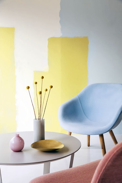 Sbírejte obrázky zajímavých interiérů, ústřižky látek, barevných papírů, rozložte je vedle sebe a porovnejte. Uvidíte, že na řadě z nich se budou opakovat podobné barvy a prvky. Nezapomeňte se však rozhlédnout i doma. Jaká barevnost se vyskytuje na nábytku, pohovce, koberci, závěsech… Pokud mají neutrální barevnost, budou pravděpodobně zadobře s novou barvou místnosti. Naopak vybavení ve výrazných odstínech bude výchozím bodem pro sestavení barevné palety nové výmalby.