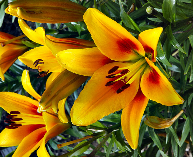 Zvláštní pozornost věnujte také prašníkům s pylem – hlavně u lilií. Liliové prašníky jsou velké, nápadné a pylu obsahují velké množství. Pokud si ho otřete o šaty nebo klepnete na ubrus, je velmi problematické žluté skvrny vyčistit. Nejlepším opatřením je pylové prašníky odstranit, jde to velmi snadno a květy se neznehodnotí. Stačí prašník sevřít dvěma prsty do papírového kapesníku a lehce zatáhnout.