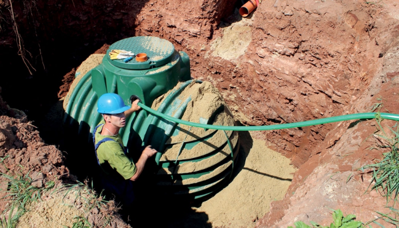 Uložit menší nádrže je možné v několika lidech ručně. Větší nádrže vyžadují instalaci pomocí stavební mechanizace. Na hutnění podsypu je vhodné použít žabku, obsyp doporučujeme hutnit ručně, např. kůlem. Je velmi důležité správně si spočítat výšku usazení nádrže vůči terénu a vůči přívodu vody. Je potřeba dodržet sklon od dešťových svodů (min. 0,5%, lépe 1%) a rozmyslet budoucí výšku terénních úprav.