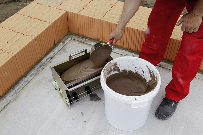 4. Poté se maltovací vozík naplní maltou pro tenké spáry.