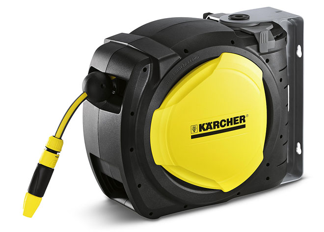 Box na hadice Premium CR 7.220 s automatickým navíjením a snadným vytahováním hadice. Je výkyvný v rozmezí od 0°až do 180°, má nastavitelnou brzdu navíjení a praktickou montáž na stěnu (KÄRCHER, www.karcher.cz).