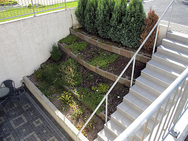7. Schodiště: I strmě šikmá plocha před domem může posloužit jako místo pro rostliny. Vznikly tak půvabné schody vedle schodů.