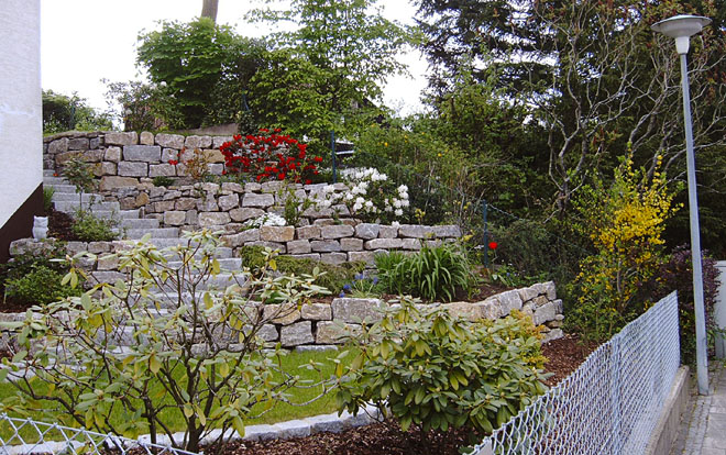 5. Skalka bez hranic: Obvykle jsme zvyklí pozorovat předzahrádky za plotem, ale aby záhony „podtekly“ pod plotem, a to hned ve dvou stupních, to se hned tak nevidí.