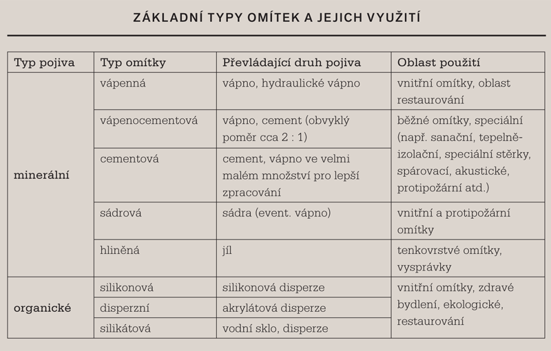 Velkou skupinu tvoří disperzní omítky, které zaručují maximální vodoodpudivost fasády. Dobře odolávají atmosférickým vlivům, jsou pružné a není třeba je opatřovat nátěrem, protože je lze namíchat v libovolných odstínech. Pojivem jsou nejrůznější druhy umělých pryskyřic. Nedoporučují se pro použití při rekonstrukcích.