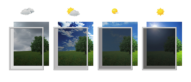 Jde o tzv. dynamické či elektrochromické sklo pro okna a fasády, které můžete dle potřeby naprosto tiše a elektronicky ztmavit či zesvětlit. A to buď automaticky, stisknutím tlačítka nebo přes dotykovou obrazovku, například mobilního telefonu.
