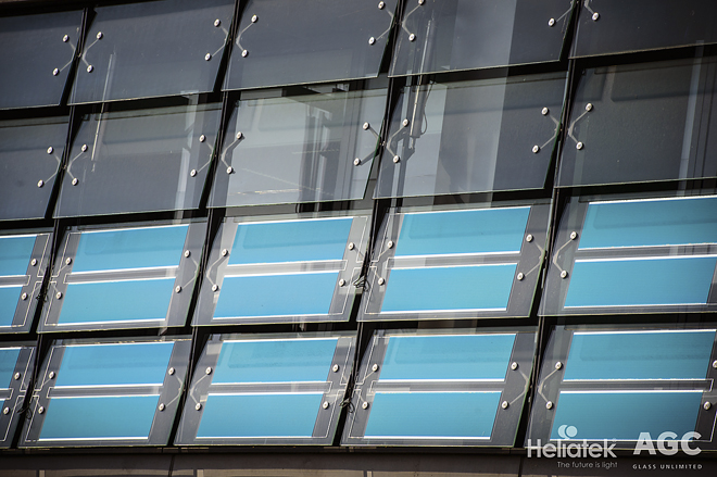 Výrobce fotovoltaických filmů, společnost Heliatek z Drážďan, a belgický výrobce plochého skla, společnost AGC Glass Europe, spolu v současné době pracují na vývoji solárního skla o různých rozměrech, průhlednosti a barevných odstínech. Výsledné produkty pak budou k dispozici architektům pro využití zejména jako fasádní prvky. Velmi tenké solární filmy představují značný pokrok, protože dosavadní fasádní solární moduly využívaly rozměrově větší silikonové solární buňky.