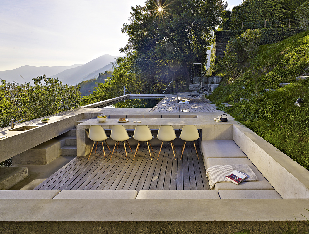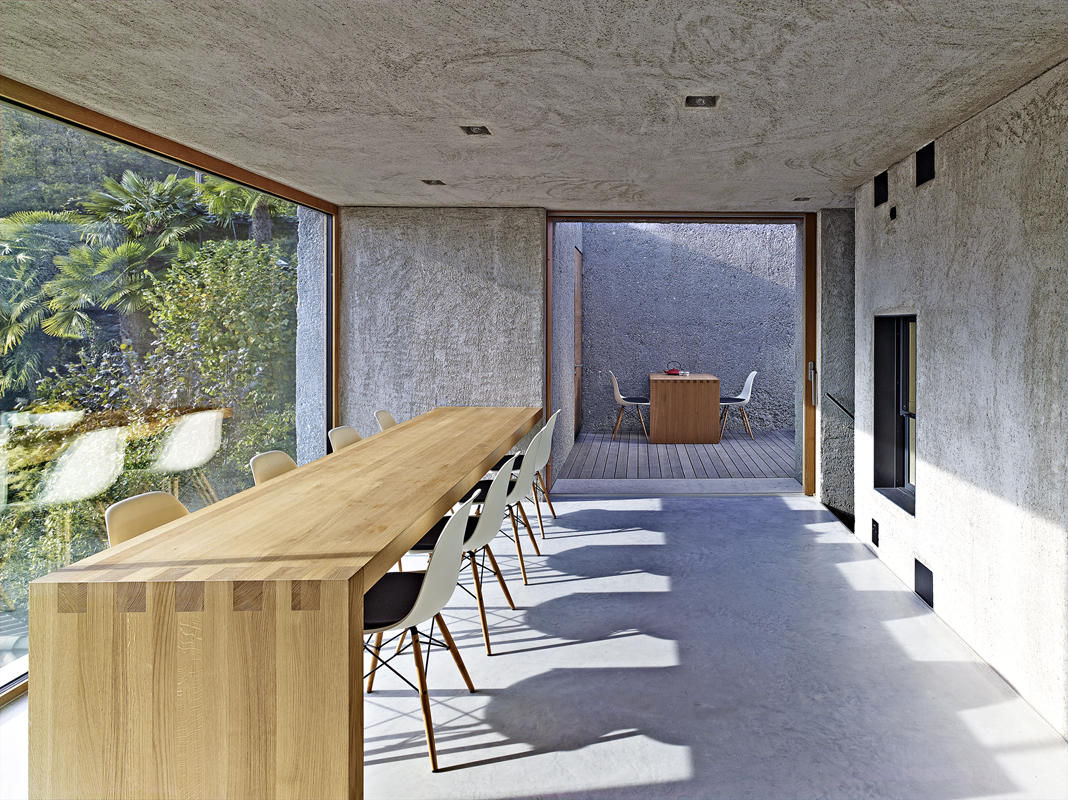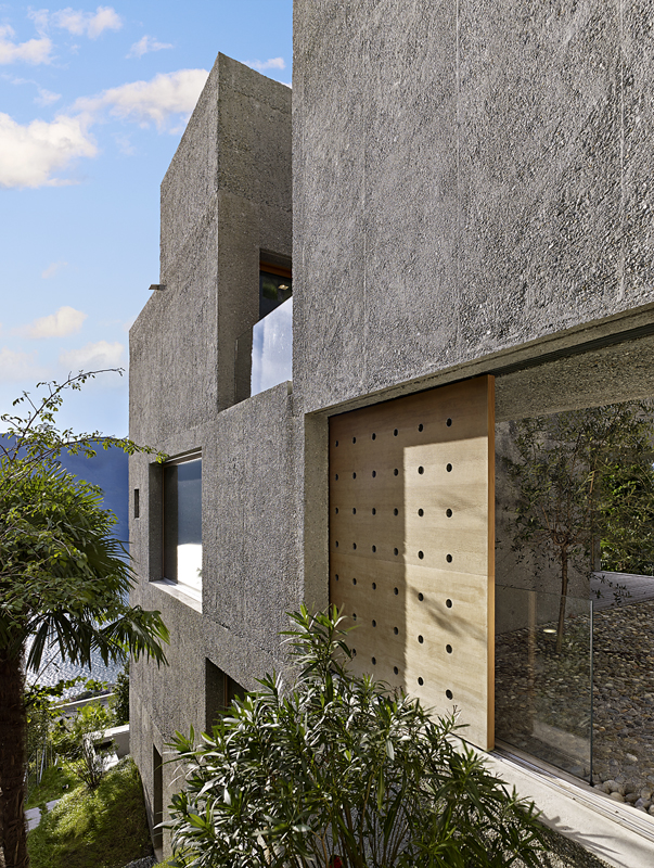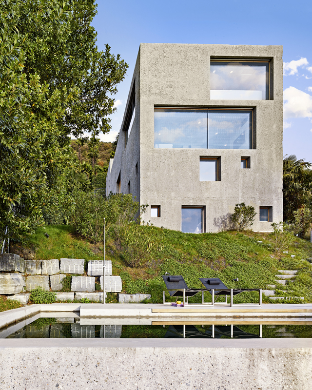 Betonový dům v Brissagu je druhým rezidenčním projektem, který navrhli architekti ze studia Wespi de Meuron Romeo. Portfolio architektů a také konkrétní místo sehrály důležitou roli v rozhodnutí majitelů o vzniku minimalistické stavby z betonu, která ukrývá víc, než prozrazuje. Budova šplhající po svahu vytváří soustavu cestiček a dvorků, kterými se proplétají obyvatelé, aby mohli velkými okny a průzory obrácenými k jihu sledovat krásu jezera.