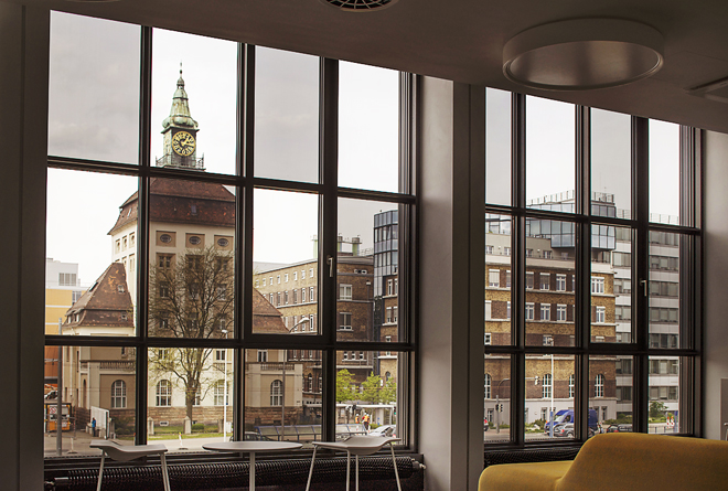 Instalace je neuvěřitelně jednoduchá, protože SageGlass lze použít jako konvenční izolační sklo u některých fasádních a dveřních systémů Schüco.