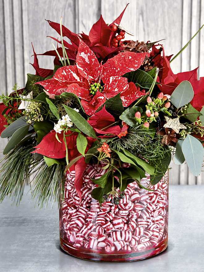 Další tradiční rostlinou je jmelí v přírodní formě či zlacené. Ale i další rostliny jsou krásné a zajímavé a můžete je použít k dekoraci doma i venku. Jana Nováková pracuje nejčastěji s cesmínou, libavkou, šípky růží, hlohyní šarlatovou, s různými šiškami; venku pak s pámelníkem či břečťanem.