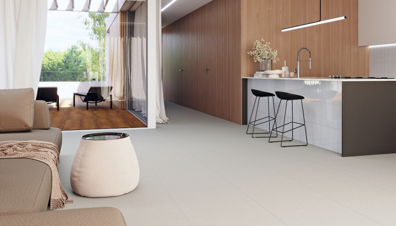 Povrch ABS poskytuje dlaždicím Castone ve čtvercových formátech 80 × 80 a 60 × 60 cm nejen vysokou odolnost a trvanlivost, ale i bezpečný protiskluzový efekt.