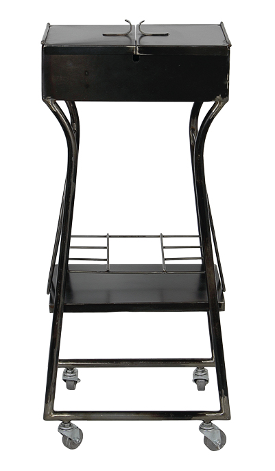 Postel vyrobená na zakázku podle požadovaných rozměrů z tmavého dřeva. V čele postele stojí funkcionalistické trubkové židle od českého návrháře Jindřicha Halabaly.