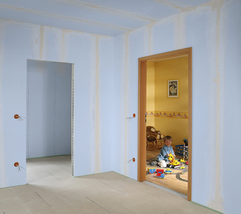 Poprvé je na trhu k dispozici jednovrstvě opláštěná sádrokartonová příčka splňující přísné normové požadavky na zvukovou izolaci uvnitř bytu (RIGIPS)