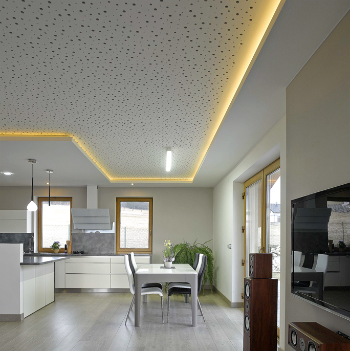 Různé typy podhledů a světelných ramp jsou jedinečnou doménou sádrokartonu a dodávají interiéru nádech luxusu.