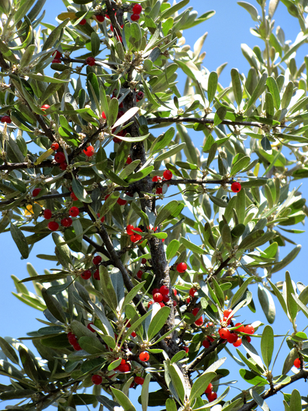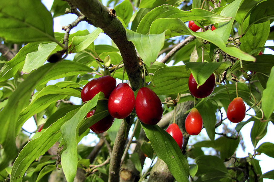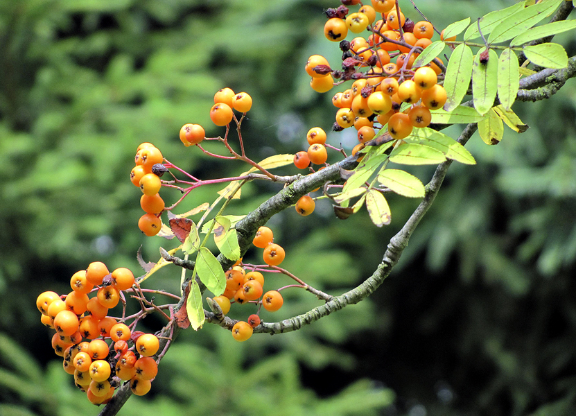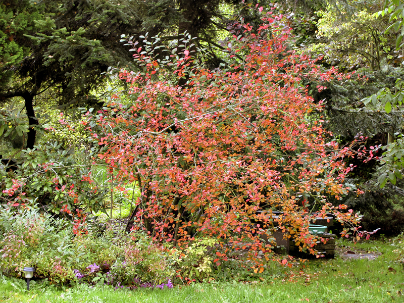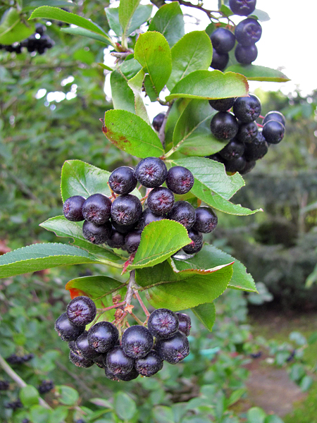 Naše průvodkyně zahradami doporučuje zejména aronie nebo rakytník. Aronie, neboli černý jeřáb (Aronia melanocarpa), se pěstuje jako keř nebo jako roubovaný stromek s bílými květy na jaře a se zářivě oranžovočerveně zbarvenými listy na podzim.