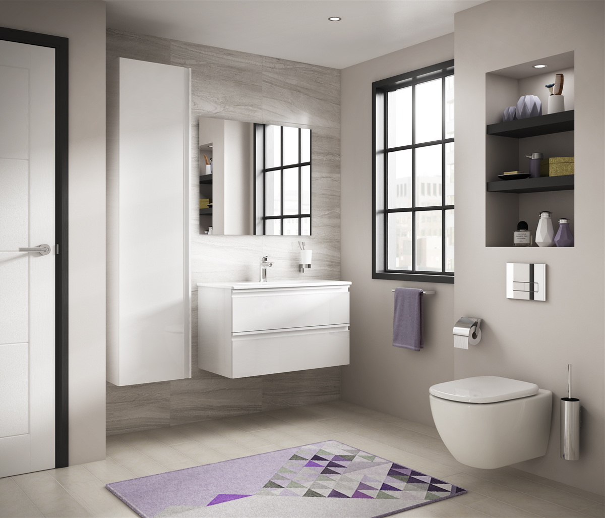 Keramiku TESI lze kombinovat s elegantně-praktickým koupelnovým nábytkem TESI. Inteligentně navržená řada koupelnového nábytku Tempo přináší uživatelům chytré řešení diskrétních skladovacích prostor.
