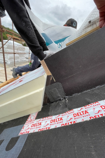 Po osazení na střechu je třeba zajistit vzduchotěsné propojení s parozábranou položenou na bednění za využití lepidla DELTA-THAN