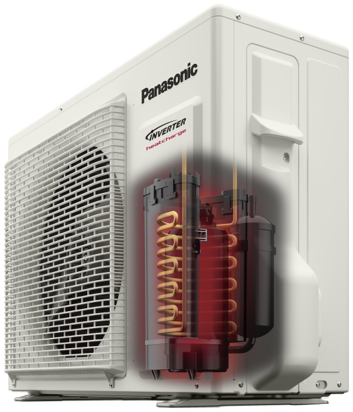 Dalším příkladem je nástěnná klimatizace Panasonic Etherea, která je schopna energeticky účinného vytápění až do venkovní teploty –20 °C. Jednou z výhod modelu je funkce Aerowings 2.0, která zajišťuje koncentrované proudění vzduchu směrem dolů, takže je dosaženo efektu podobného podlahovému vytápění: teplý vzduch stoupá nahoru a naplňuje místnost, čímž zajišťuje příjemný pocit tepla.