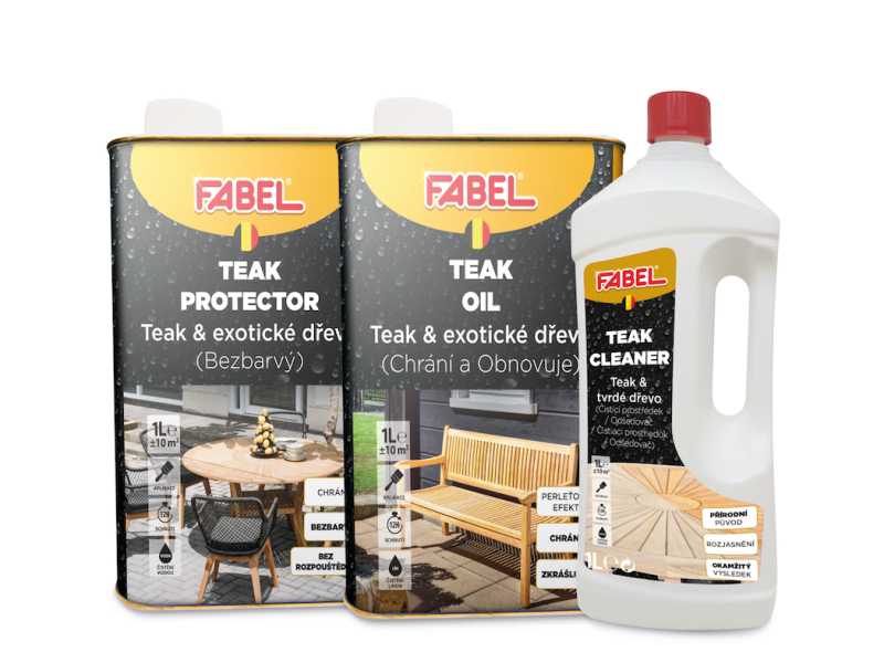 „Zvláštní pozici mezi všemi druhy nábytku ze dřeva zaujímá ten, který byl vyroben z tropického teaku. Má totiž tu unikátní vlastnost, že časem se jeho medová zlatohnědá barva mění na typickou šedavě stříbřitou. Pokud ale chcete uchovat jeho medové zbarvení s proužky přecházejícími do světle až do tmavě hnědé, doporučujeme speciální použít přípravky Teak Cleaner a Teak Protector“, vysvětluje Jaroslav Křišťál, produktový manažer společnosti Mountfield. Nechte nový nábytek týden ve venkovním prostředí, pak jeho barevný tón „zakonzervujte“ Teak Protectorem. Pokud budete renovovat již zašlý nábytek, jeho vyčištění zajistí Teak Cleaner, pak následuje zmíněné ošetření Teak Protectorem. Použít můžete také čistý teakový olej, ten je vhodný i na ochranu povrchu stolů před znečištěním skvrnami. Na konci sezony použijte oba přípravky a určitě nezapomeňte dotáhnout šrouby kování. Teakový nábytek může zůstat venku. Mráz, sníh a vlhko mu nevadí.
