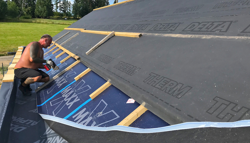 Tím nejjednodušším a zároveň minimálně nákladným opatřením je ochrana zateplení šikmé střechy spolehlivě funkční pojistnou hydroizolací slepenou ve spojích s těsným napojením na přilehlé konstrukce a konstrukční prostupy. V takovém případě chráníme pod pojistnou hydroizolací ležící vrstvy jednak před vlhkostí, ale především před prouděním chladného vzduchu v zimním období. Princip je jednoduchý – i při standardních tloušťkách tepelněizolačních vrstev nesnižovat proudícím vzduchem jejich tepelnětechnické vlastnosti, ale naopak je využít na maximum a maximálně je tím zúročit.