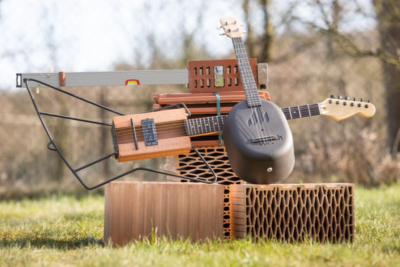 Pokud máte pocit, že bizarnější kytary není, pokusím se vás vyvést z omylu. Kytaru lze vytvořit i z „obyčejné cihly“, tedy konkrétně z lícové cihly Klinker, česky nazývané též zvonivka, doplněnou o krk z vodováhy a dvojici strun laděných podle nálady hudebníka. Zvuk tohoto nástroje je velmi zvláštní. Absence pražců rozvazuje možnosti improvizace i mimo standardní tónovou soustavu, na což naše ucho není u kytar příliš navyklé. Klinker cihla vás zcela jistě zaujme také svou zvonivostí, pokud do ní klepnete tvrdším materiálem. Nakonec, dobře vypálená keramika zvoní vždy hezky i v případě, že se jedná o hrnky, vázy a další předměty.