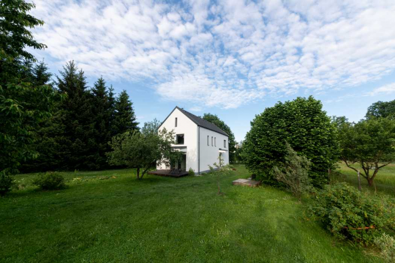 „Z patra máme nádherné výhledy na kamenolom, kopec Brčík, táhlou louku či kostel. V létě je doma příjemně chladno díky stínu vzrostlých stromů. Když na zimu opadají, do oken hřeje zimní slunce. Regulativy nastavené územním plánem byly adekvátní a na výslednou podobu domu neměly vliv. Novostavba využívá prvky současné architektury, nicméně jsem hlídal, aby zapadla do měřítka okolní zástavby. Největším oceněním je, jde-li někdo okolo a dům okomentuje slovy – jako by tu stál odjakživa,“ zmiňuje spokojený majitel a autor návrhu vycházejícího z lidové architektury.