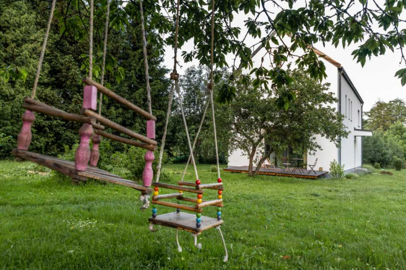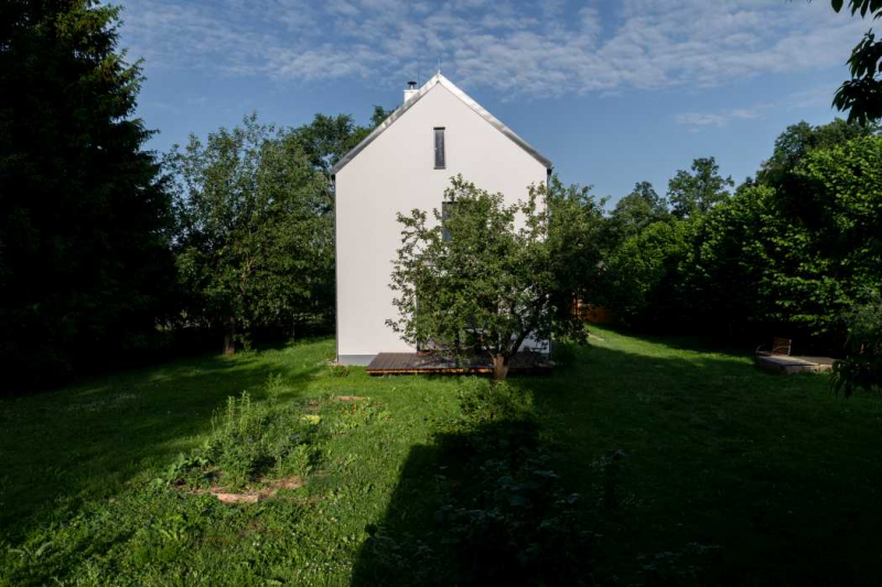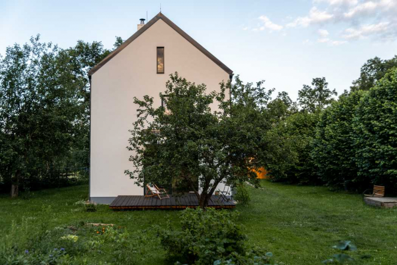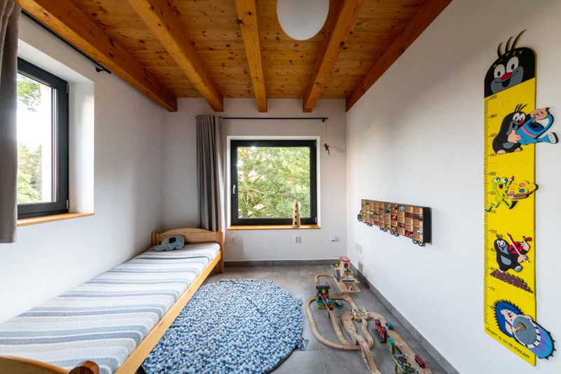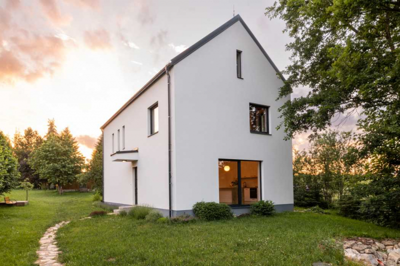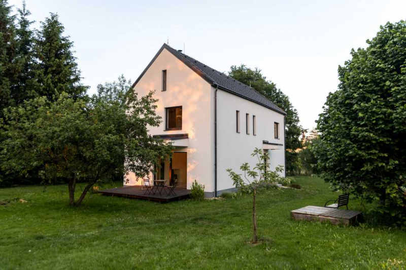 Dnes už čtyřčlenné rodině ušetřilo náklady na dům pár podstatných věcí – vlastní pozemek a autorský projekt, zároveň svépomocná výstavba. „Hodně nám pomohla rodina, kamarádi. Na složitější činnosti jsme přizvali místní řemeslníky – pokaždé z blízkého okolí, žádná doprava přes polovinu republiky. Až na pár výjimek jsem byl na stavbě v montérkách pokaždé, pokud se něco dělo. Postupně jsem si troufnul i na náročnější práce, což je pro architekta nedocenitelná zkušenost. Stavba trvala krátce přes dva roky a zvládli jsme ji bez náročnějších technologií. Na druhou stranu v domě máme opravdu jen to, co potřebujeme,“ připomíná Zdeněk.