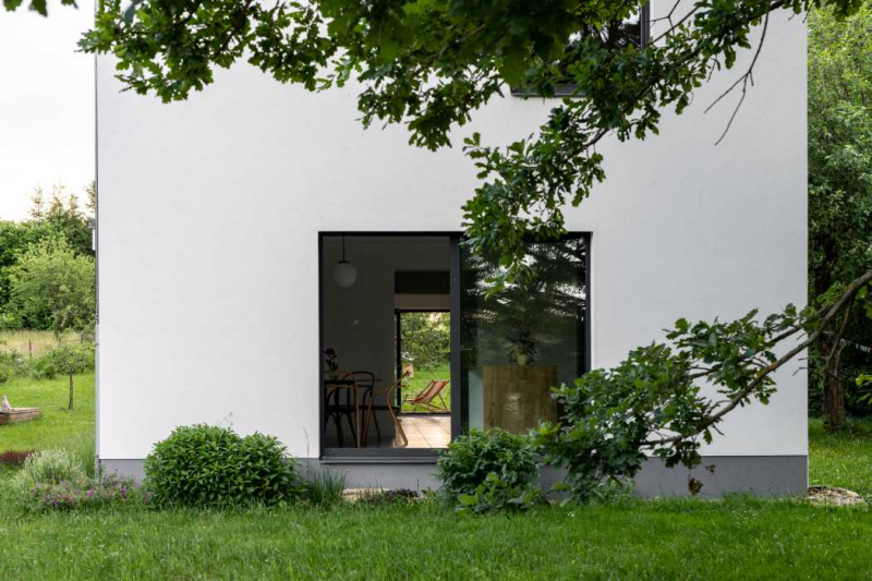 Řešení konzultoval s manželkou od fáze studie a s úsměvem vysvětluje: „Bral jsem ji jako klienta. Rozdělení rolí fungovalo, architekt totiž potřebuje mantinely.“ Kristýna si přála oddělenou obytnou kuchyň. Varianta, která sice nezapadá do současného trendu otevřených obývacích pokojů, ale rodina tím získala dvě místa pro společný život.